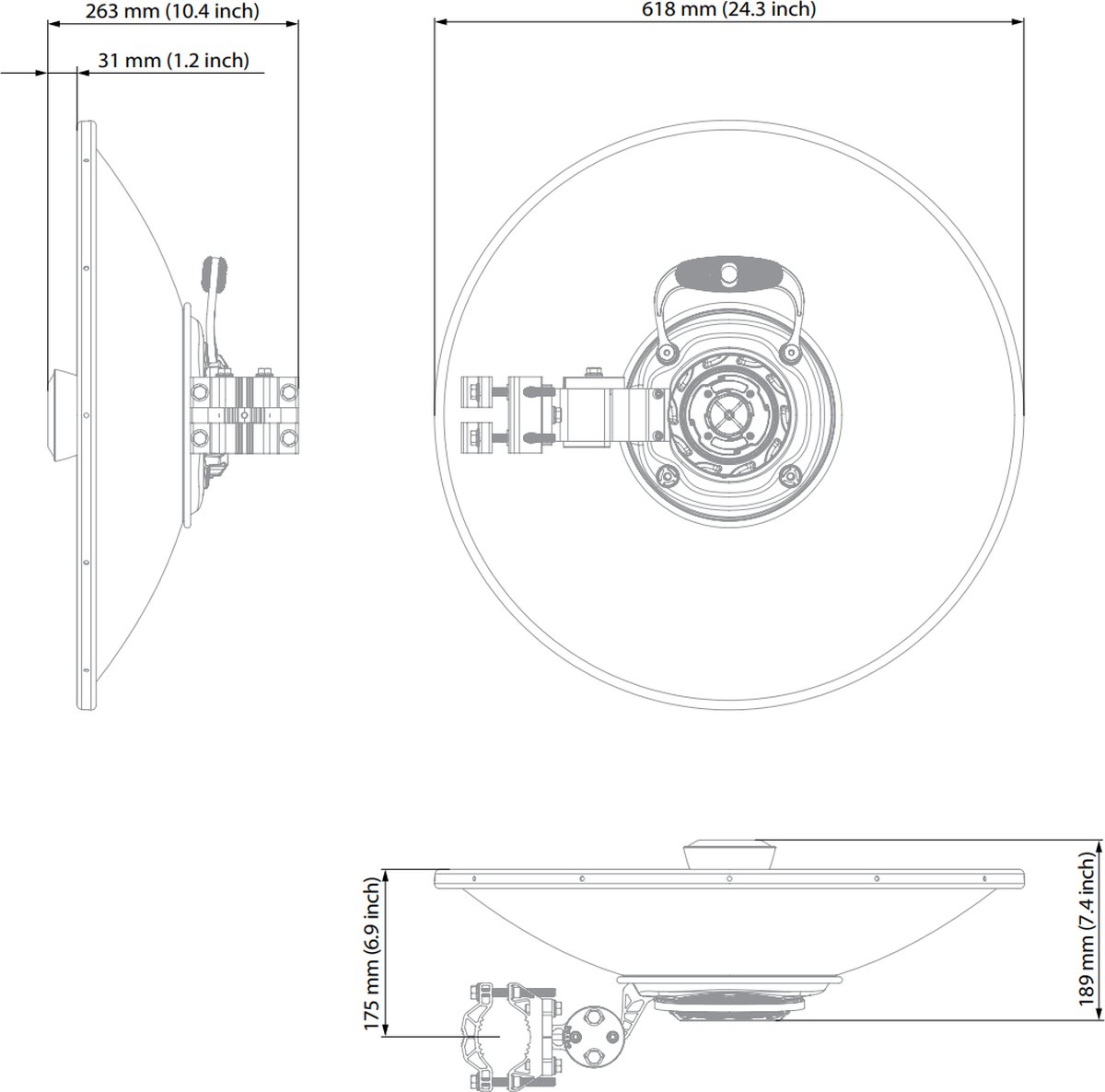 Aluminum, UV stabilized ABS plastic, Stainless steel