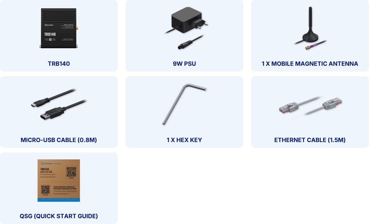 TRB140 LTE Ethernet Gateway е малко, леко и енергийно ефективно IoT устройство, оборудвано с критични за мисията LTE възможности, RJ45 10/100/1000 Mbps порт и Linux среда, предлагаща висока степен на персонализиране, проектирано да изпълнява IoT проекти с лекота.