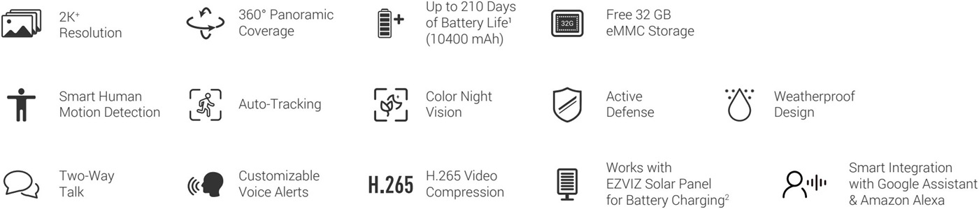 Камерата HB8 2K+ улавя детайли от всички посоки, предлагайки 360° рязко покритие с разделителна способност и предоставя безплатно вградено хранилище за автоматично записване на околните дейности. С изключително дълъг живот на батерията до 210 дни, камерата HB8 2K+ революционизира всеобхватната инсталация на външни камери, като същевременно се представя също толкова добре, колкото и своя кабелен аналог. А с опционалното слънчево захранване камерата HB8 2K+ става още по-добра.
