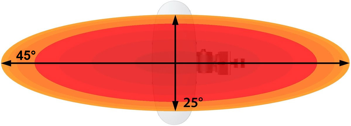 Асиметричната антена AH45WB не излъчва странични лобове, фокусирайки енергията в един основен лъч. Това е една от най-важните характеристики на безжичните мрежи. Благодарение на тези уникални характеристики на излъчване, антената улавя значително по-малко шум в сравнение със съществуващите антени за масовия сектор. Проблемите с шума са пряко свързани със страничните лобове на антената – неизбежен аспект при повечето конкурентни продукти. AH45WB се държи различно, като е практически „глуха“ извън основния лъч.