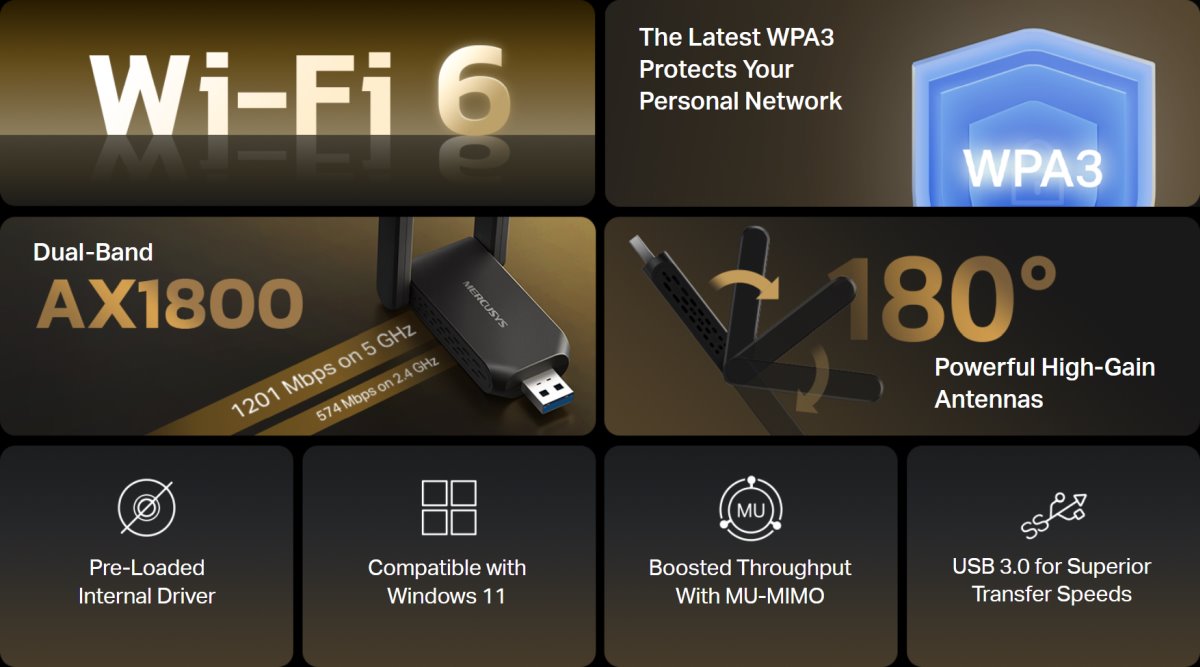 MERCUSYS MA72XH, Wi-Fi 6 High-Gain wireless Dual-Band USB adapter