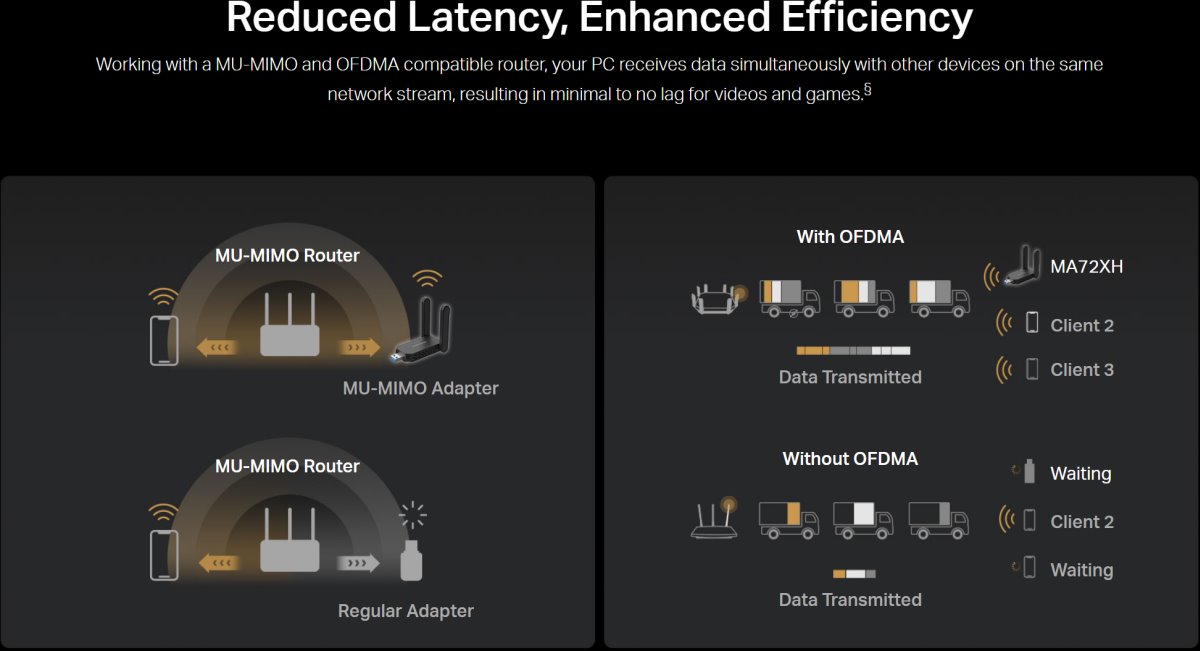 - MU-MIMO — Едновременно обслужване на няколко устройства без повече латентност или претоварване на честотната лента.