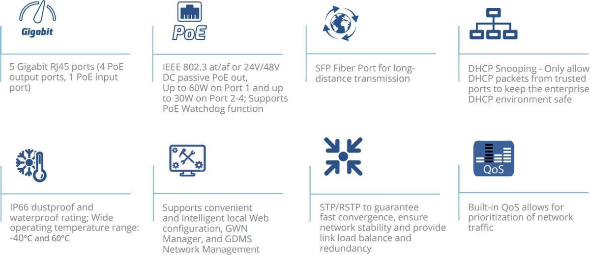 - Поддържа удобна и интелигентна локална уеб конфигурация, GWN Manager и GDMS мрежа