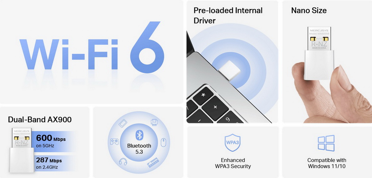 MERCUSYS MA60XNB AX900 Nano Wi-Fi 6 Bluetooth USB Adapter