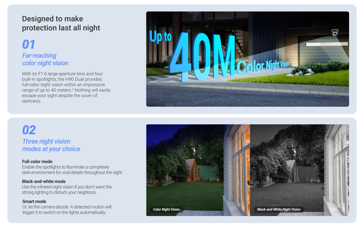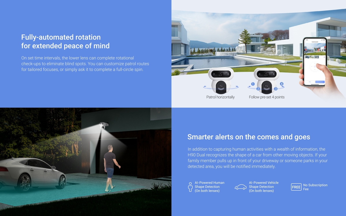 - 360° покритие - с автоматично патрулиране и интелигентно проследяване на движението, никое движение не остава незабелязано