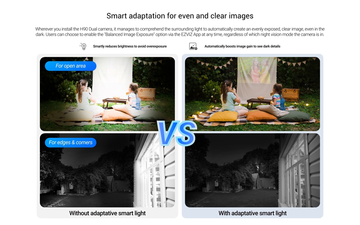 - Хибридно интелигентно осветление - IR/LED осветление с обхват 30 м + мигаща светлина (стробоскоп и звукова аларма)