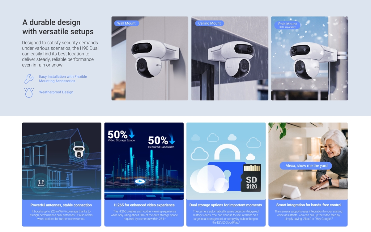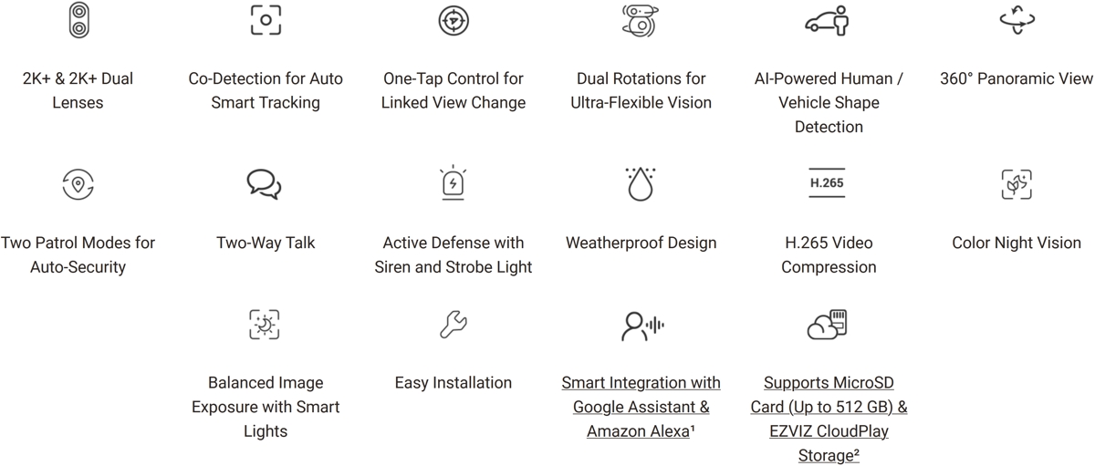 - Локално и облачно съхранение - поддържа microSD карти до 512 GB и EZVIZ CloudPlay съхранение (изисква се абонамент)