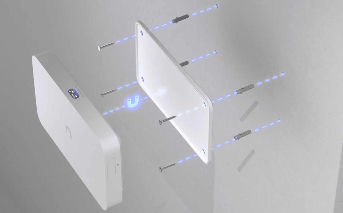 Sleek, magnetic wall mount for Cloud Gateway Fiber (UCG-Fiber) and Gateway Fiber (UXG-Fiber).