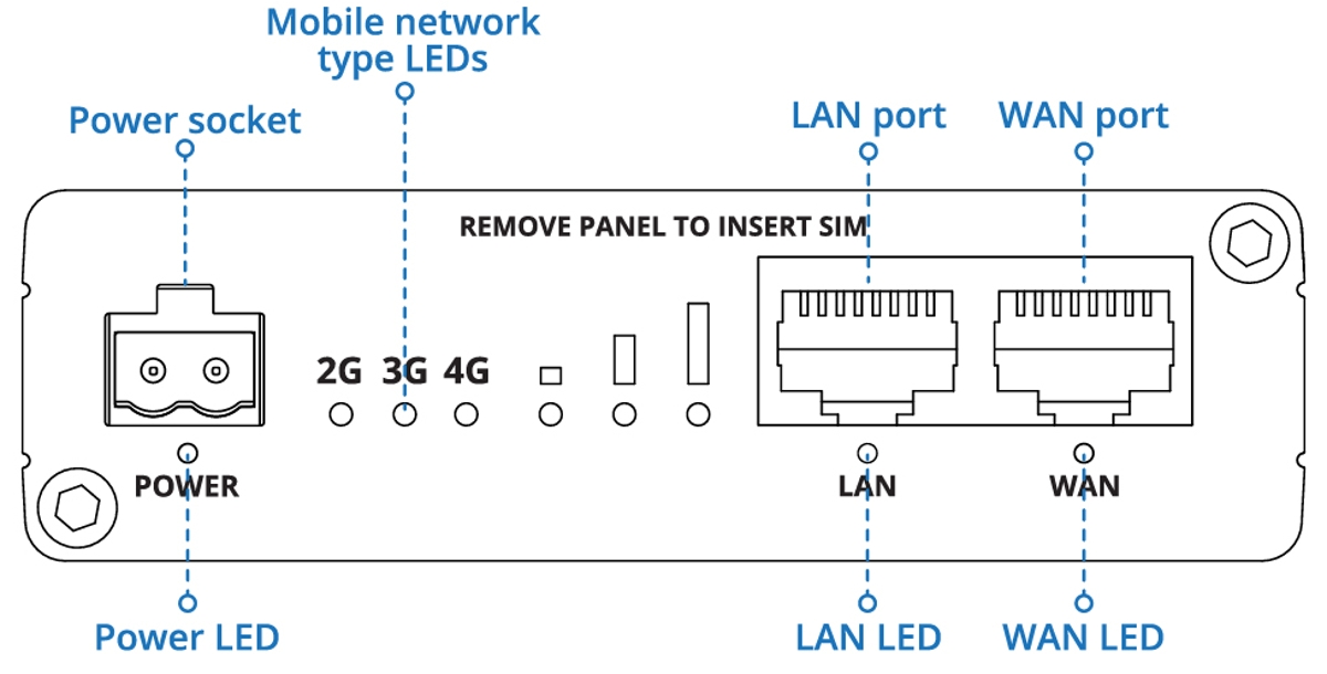 The router is equipped with a modem supporting 4G LTE Cat. 4, 3G and 2G, with data rates of up to 150Mbps downlink and 50Mbps uplink. Power can be supplied via the 2-pin DC connector (9-57 V), active 802.3af PoE (9-57 V) or passive PoE (16-57 V) on the LAN port.