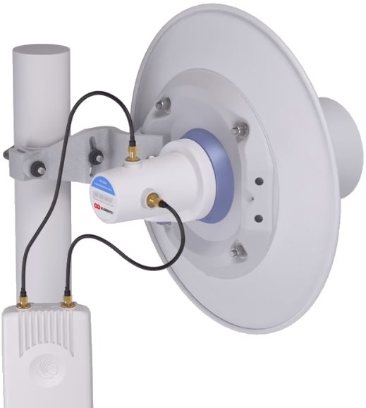 The StarterDish antenna from RF Elements is a directional parabolic antenna with a gain of 21 dBi primarily intended for client installations. The antenna consists of a very light parabolic antenna, a simple holder for a mast with a diameter from 20 to 55 mm, a radiator is made of aluminum terminated on the back with a so-called IsoStation connector for direct connection to IsoStation or PrismStation units from Ubiquiti. The antenna package also includes a reducer for connection to a C5x unit from Mimosa.