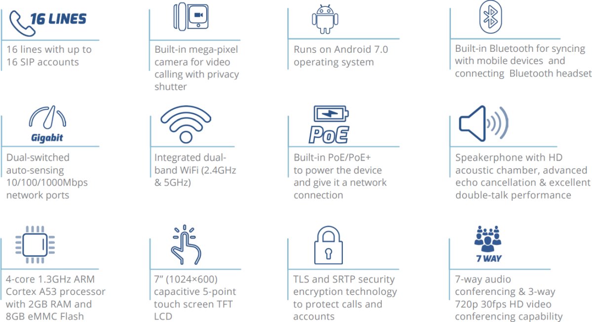 Grandstream GXV3370, Android, 6x SIP account, WiFi, BT and USB