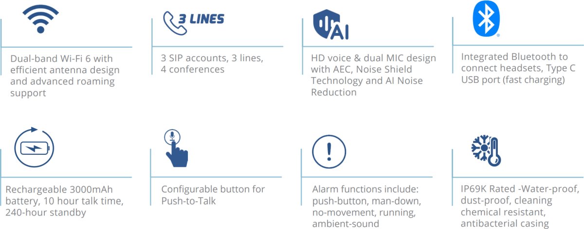 Това е автоматичен превод. Оригиналния текст може да видите тукWP836 е здрав безжичен Wi-Fi IP телефон, подходящ за много корпоративни и вертикални пазарни приложения, включително офиси, търговия на дребно, логистика, здравеопазване, сигурност и други. Чрез елегантен дизайн, лесен за използване интерфейс и разнообразие от практични, персонализируеми функции, WP836 осигурява мобилност и гъвкавост за всички гласови решения.