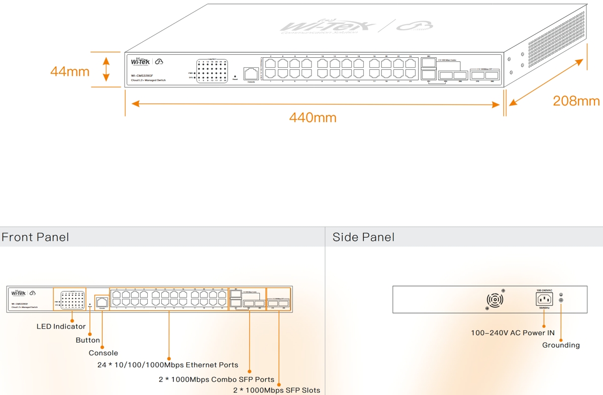 Wi-Tek WI-CMS328GF Gbit Cloud L2+ Switch