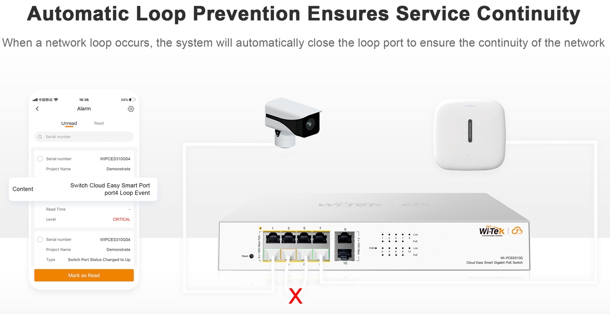 • Управление на облака чрез Wi-Tek Cloud - осигурява ефективно, лесно и сигурно дистанционно управление на устройства, интелигентно внедряване, автоматична мрежова конфигурация и предупреждения за необичайни събития