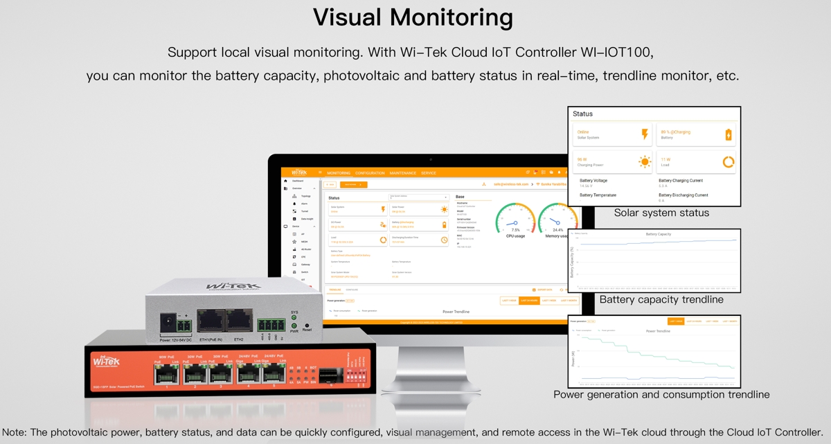 - Управление на облака чрез Wi-Tek Cloud - осигурява ефикасно, лесно и сигурно дистанционно управление на устройства *(изисква връзка чрез облачния контролер WI-IOT100)