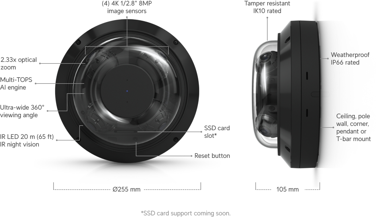 Ubiquiti AI Multi Sensor 4, UniFi Protect panoramic IP camera, 32MP
