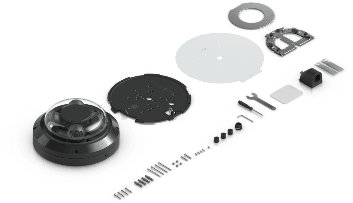 - (4) 8MP 30fps сензора (3840 x 2160 px), покритие до 360° (регулируемо зрително поле за всеки сензор от 42.8° до 108.8°)