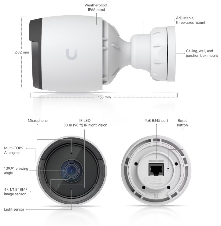 Ubiquiti G6 Bullet, UniFi Protect camera, 8MP, white