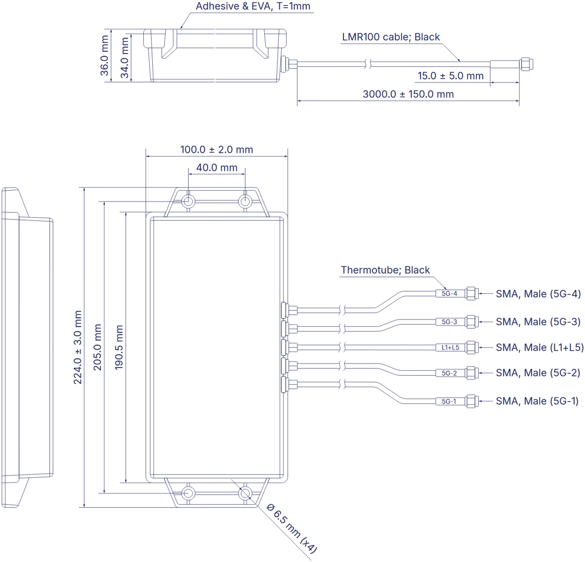 Teltonika PR1KCN40, 5G combo mobile/GNSS SMA antenna