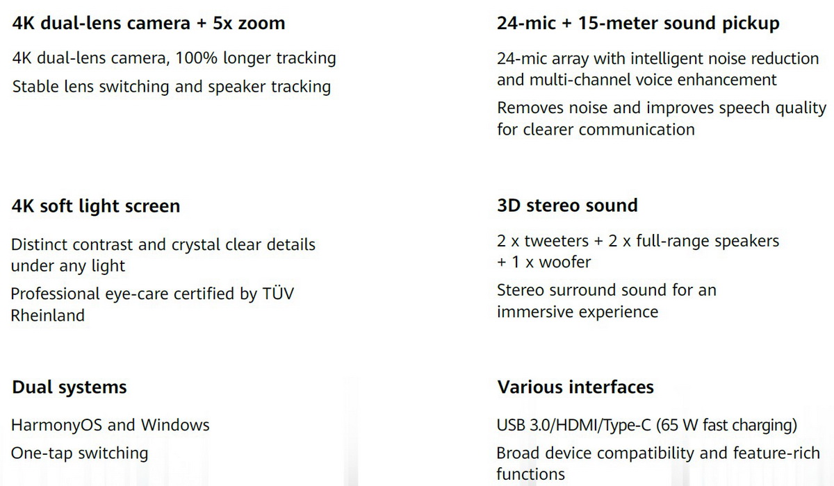 Това е автоматичен превод. Оригиналния текст може да видите тукСерията HUAWEI IdeaHub S3 разполага с интелигентна двойна камера , която осигурява реалистично изображение, първокласно изживяване при срещи и сътрудничество без забавяне. С подобрени HD аудио , видео и функции за изкуствен интелект, устройството улавя всеки детайл и интелигентно разпознава нуждите на потребителите. Това решение е предназначено за модерни офиси и конферентни зали, помагайки на компаниите да изградят интелигентна работна среда, като същевременно подобряват ефективността и качеството на сътрудничеството.
