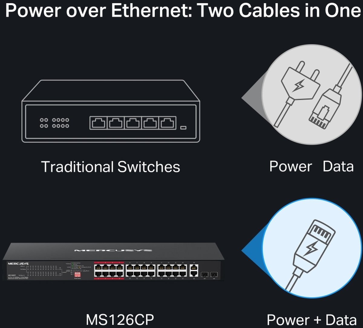 MERCUSYS MS126CP, Gigabit rackmount switch with 24-port PoE+